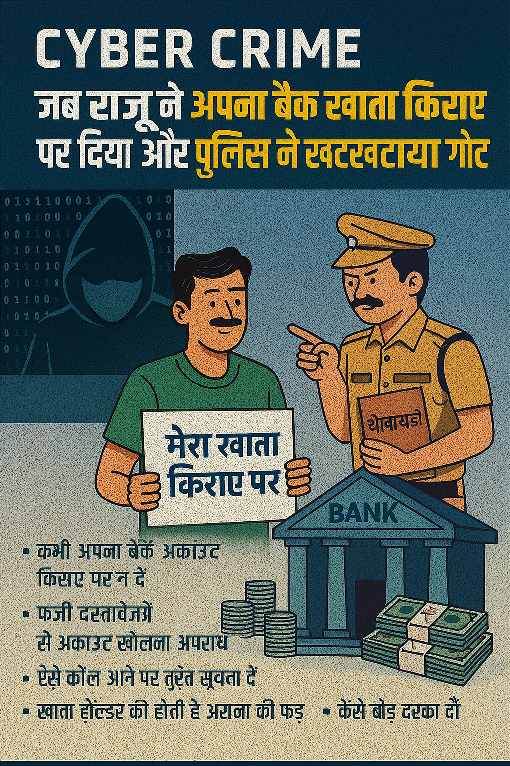 गाज़ियाबाद के एक छोटे मोहल्ले में रहने वाला राजू (काल्पिक नाम) अपनी नौकरी से मुश्किल से घर चला पाता था. एक दिन उसे एक कॉल आया –“भाई, अगर अपना बैंक अकाउंट हमें इस्तेमाल करने दोगे तो हर ट्रांजैक्शन पर 25% कमीशन मिलेगा. तुम्हें बस खाते की डिटेल देनी है.”