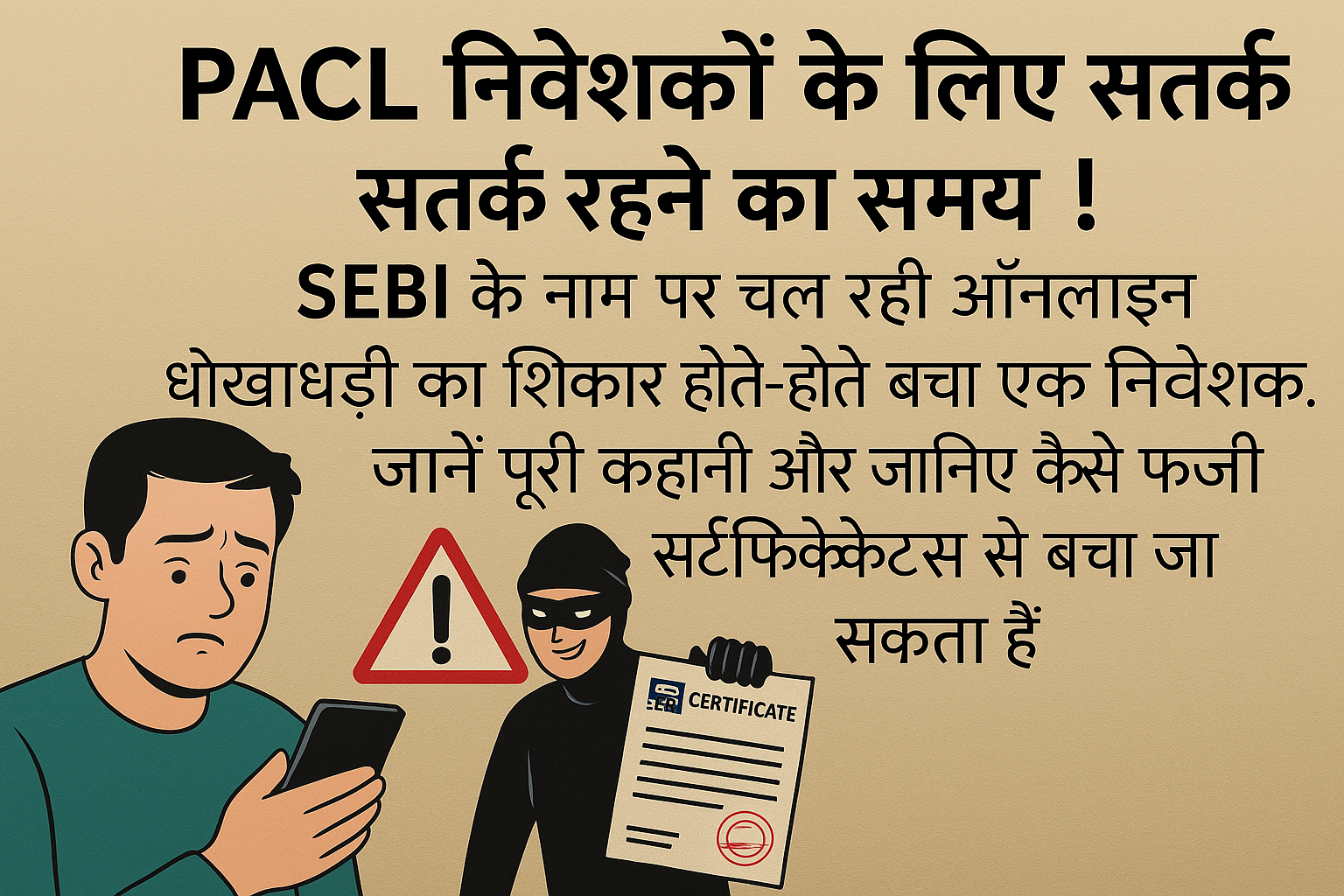 पहले कहानी के किरादारों से मिलाते हैं- राजीव शर्मा — एक आम निवेशक, जो PACL से जुड़े निवेश रिफंड का इंतज़ार कर रहा है.नीलम — राजीव की पत्नी, जो ऑनलाइन फ्रॉड्स से हमेशा सतर्क रहने की सलाह देती है.मनीष — एक ठग, जो SEBI के नाम पर फर्जी सर्टिफिकेट बेचता है.
